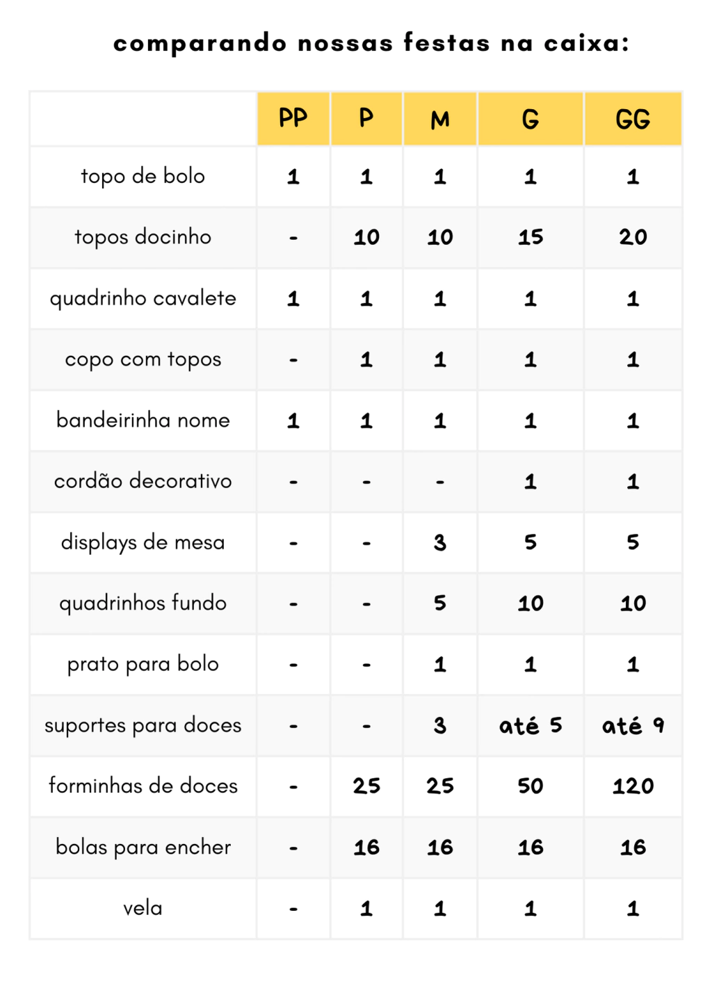 - Itens com foto do aniversariante (como foto no cavalete, no topo de bolo e topos de rostinhos para docinhos) são produtos adicionais que você encontra na página Complemente sua festa.