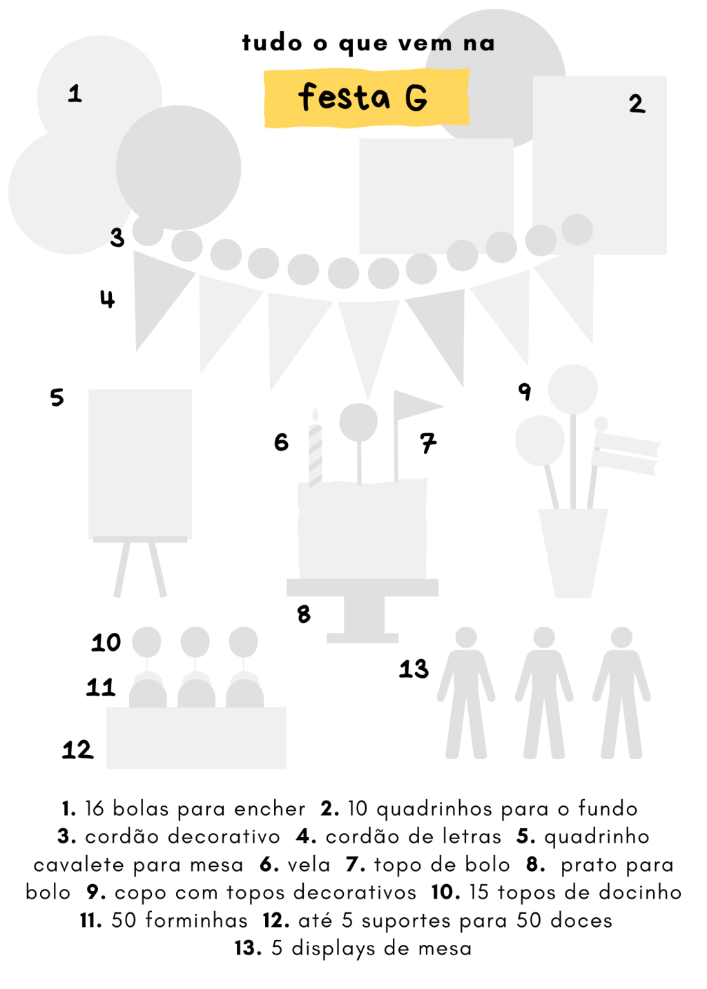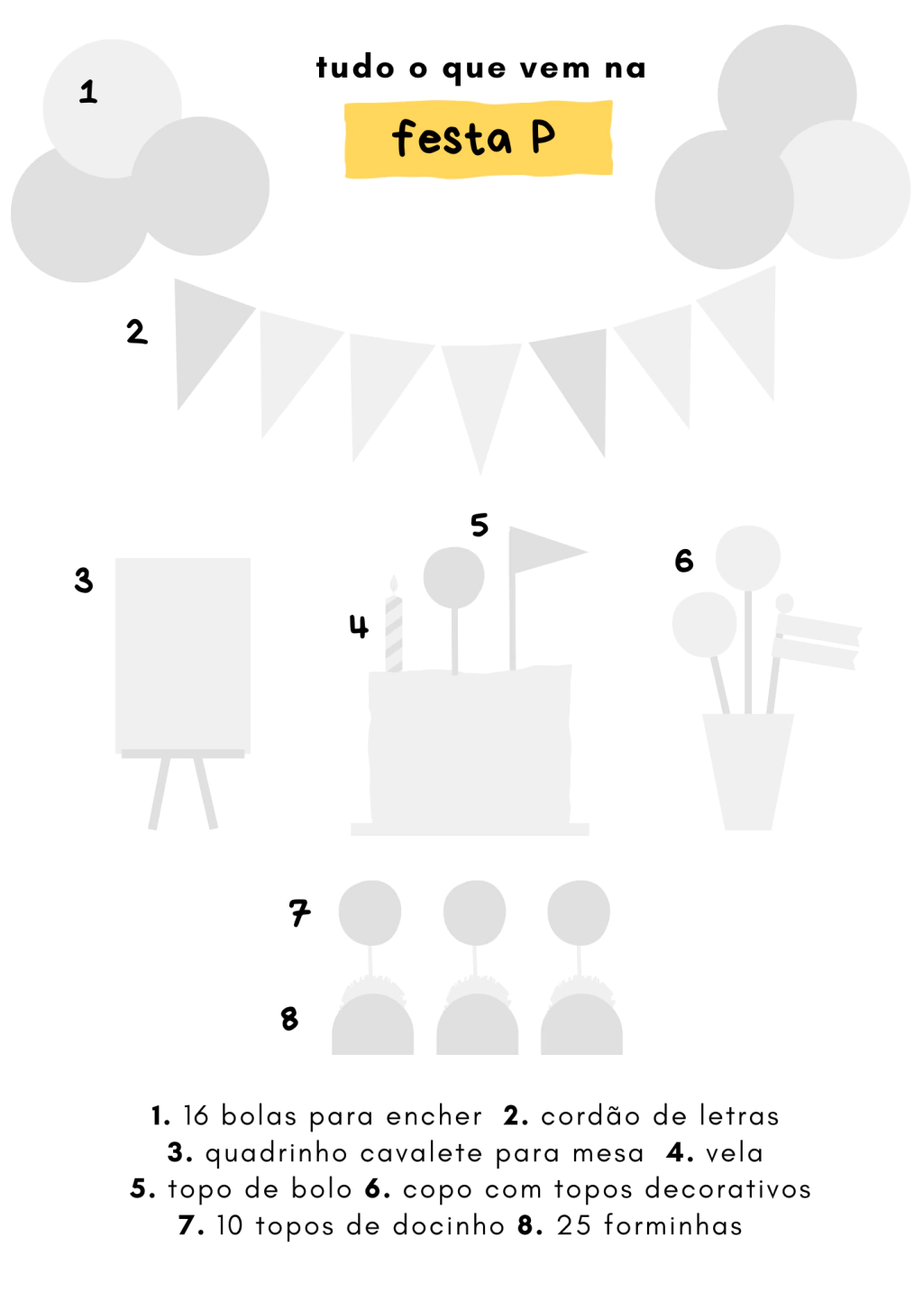 - Itens com foto do aniversariante (como foto no cavalete, no topo de bolo e topos de rostinhos para docinhos) são produtos adicionais que você encontra na página Complemente sua festa.