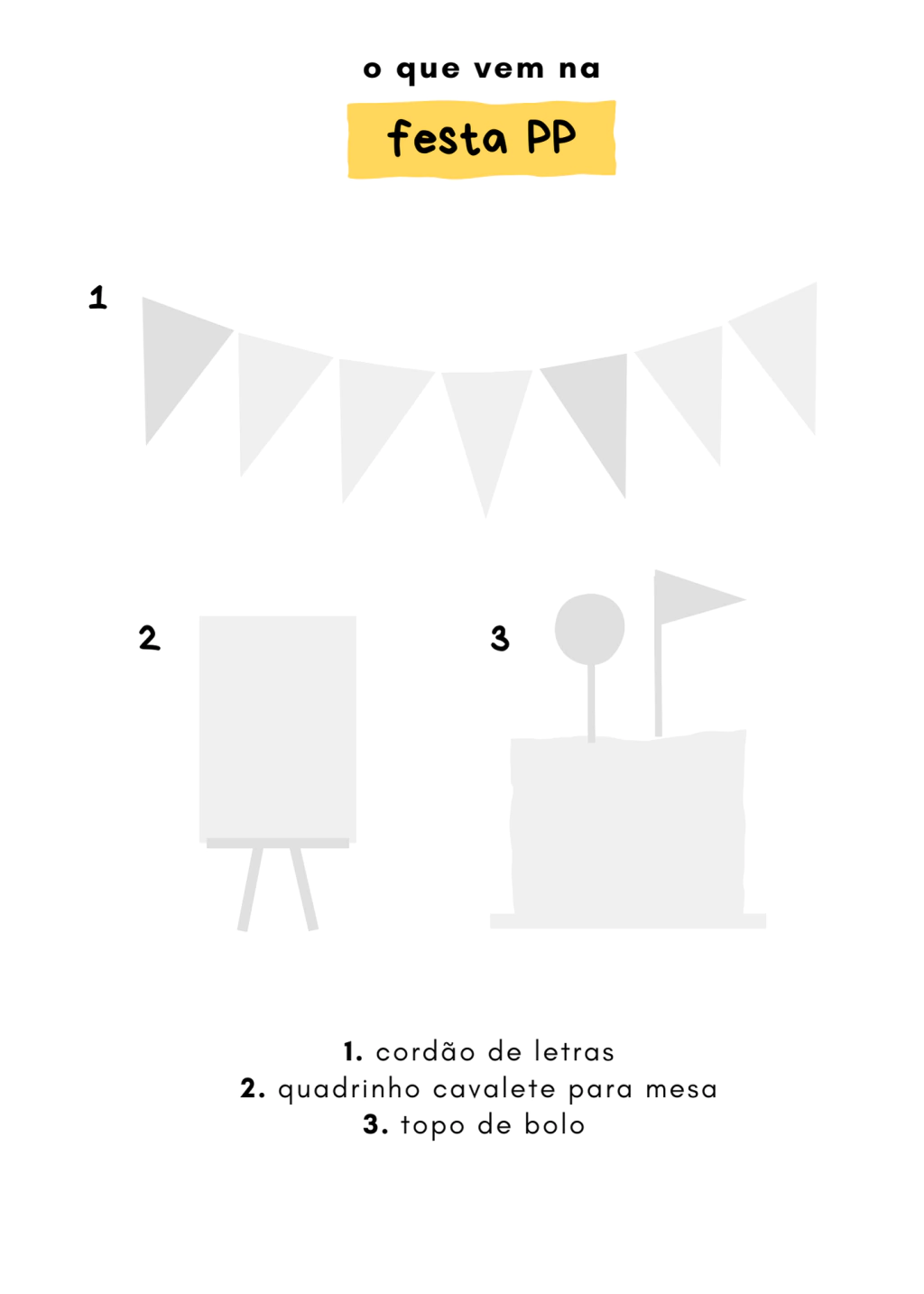 - Itens com foto do aniversariante (como foto no cavalete, no topo de bolo e topos de rostinhos para docinhos) são produtos adicionais que você encontra na página Complemente sua festa.